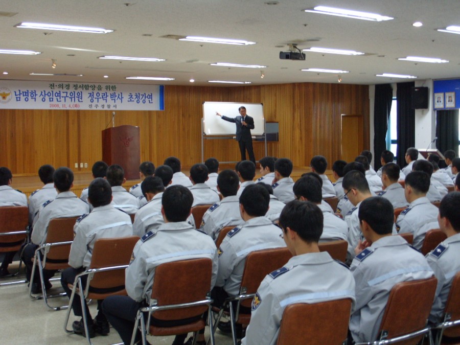 정우락 상임연구위원 경찰서 특강 페이지 정보 작성자 관리자 댓글 0건 조회 6,059회 작성일 08-11-05 14:42 목록 본문 정우락 상임연구위원이 지난 4일 오전 10시부터 1시간 1시간 20분 동안 진주경찰서에서 특강을 하였습니다. 전,의경과 경찰을 대상으로 문명사와 사상사의 흐름 남명선생의 사상 등에 대해 강연을 하였습니다. 댓글 0 댓글목록 등록된 댓글이 없습니다.