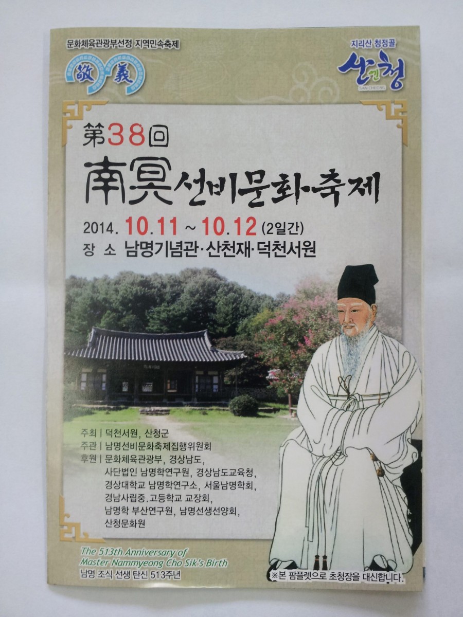 제 38회 남명선비축제 안내 페이지 정보 작성자 관리자 댓글 0건 조회 21,981회 작성일 14-10-01 11:32 목록 본문 제 38회 남명선비축제가 10월 11일과 12일 양일간 남명기념관과 산천재 일원에서 개최됩니다. 많은 관심과 성원 바랍니다. 댓글 0 댓글목록 등록된 댓글이 없습니다.