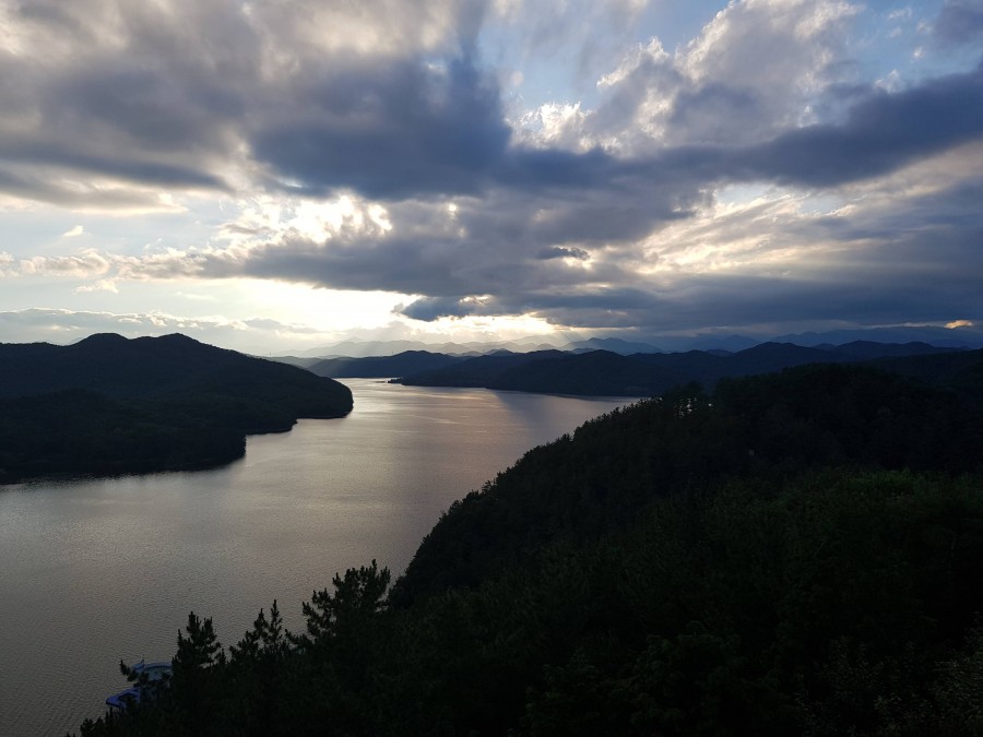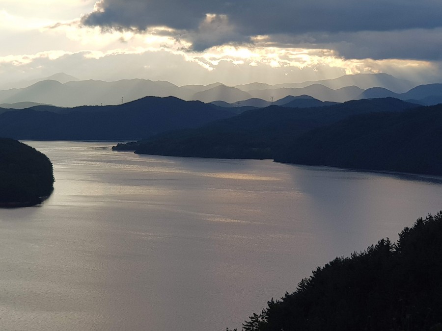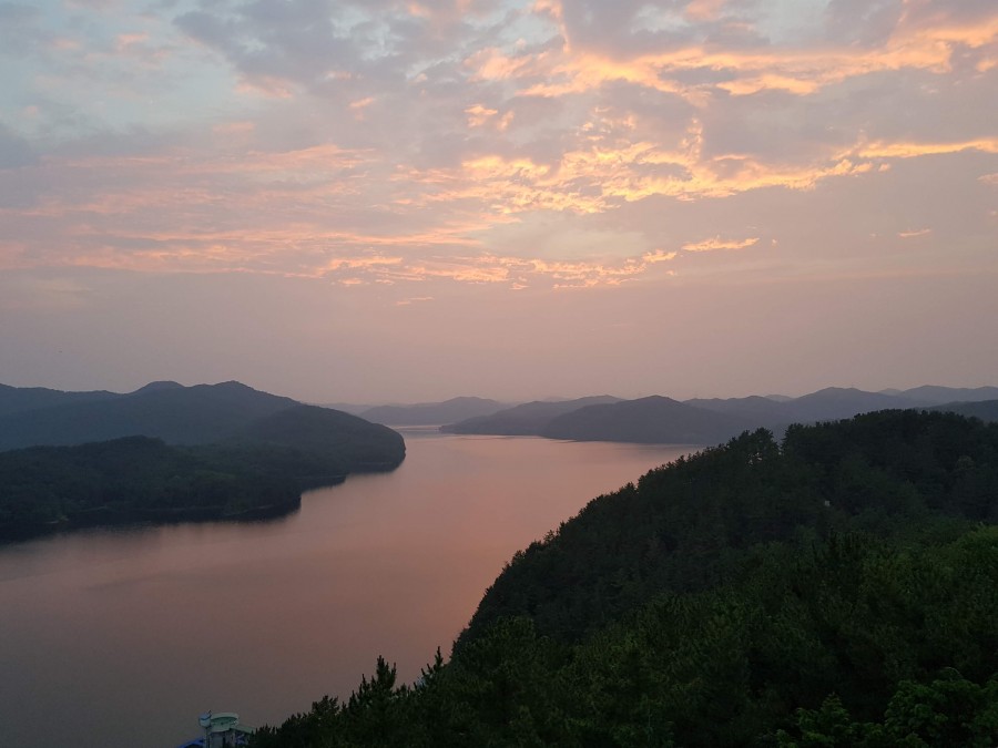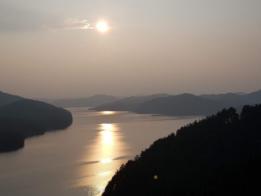 진양호晋陽湖에서 바라 본 지리산 천왕봉쪽의 낙조 및 노을