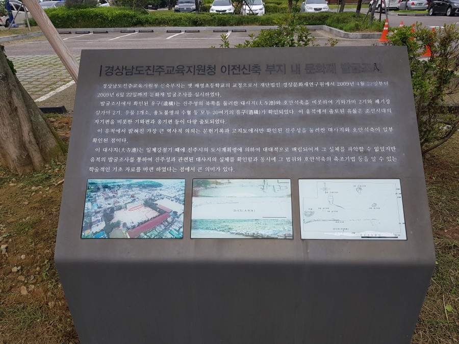 임진왜란 당시 진주성의 외곽에 있던 대사지는 진주성 방어를 위한 해자(垓字)의 역할을 하여 1차 진주성 전투에서는 승리하였으나 2차 진주성 전투에서는 왜군이 부분적으로 대사지를 매립하였다고 한다.
